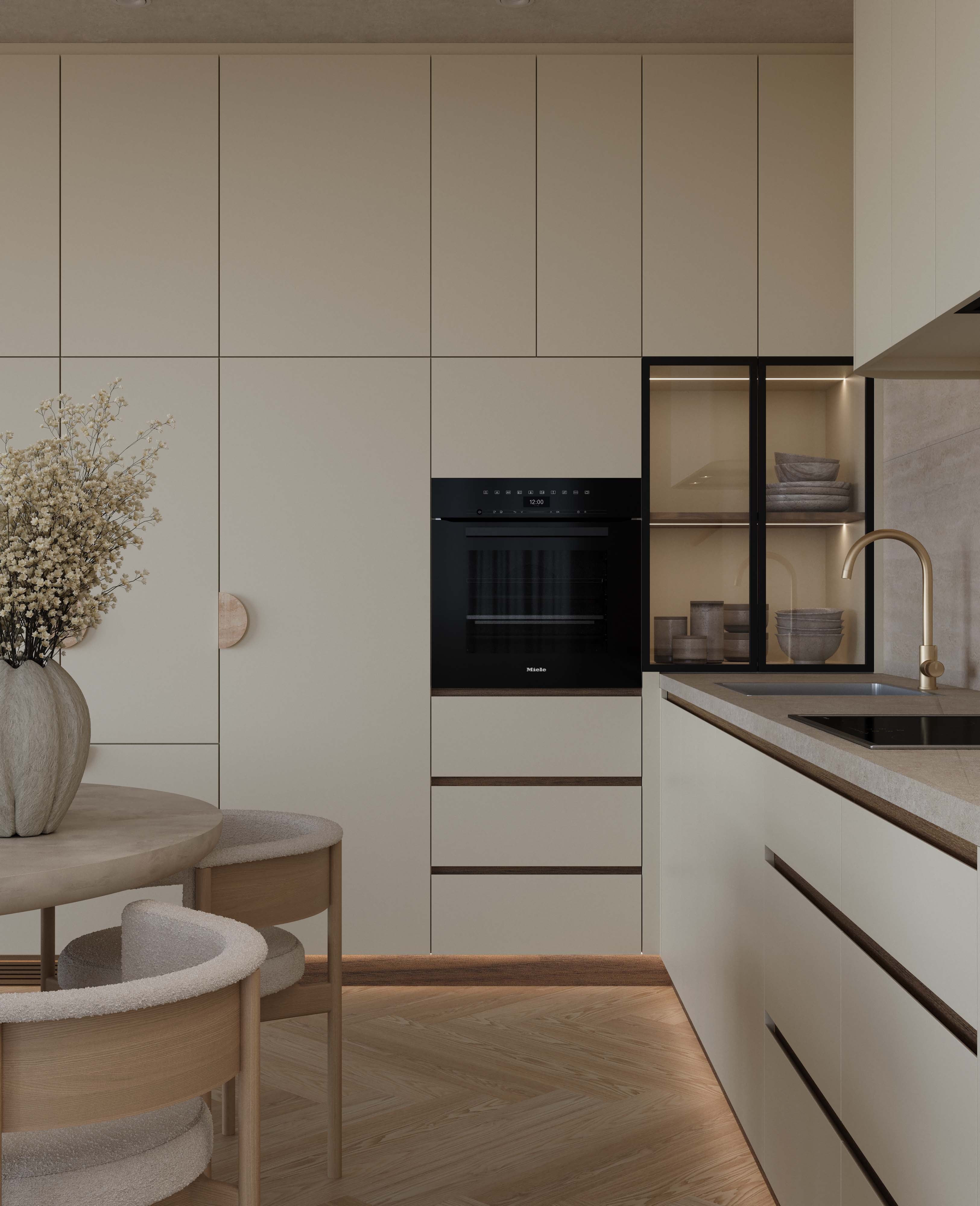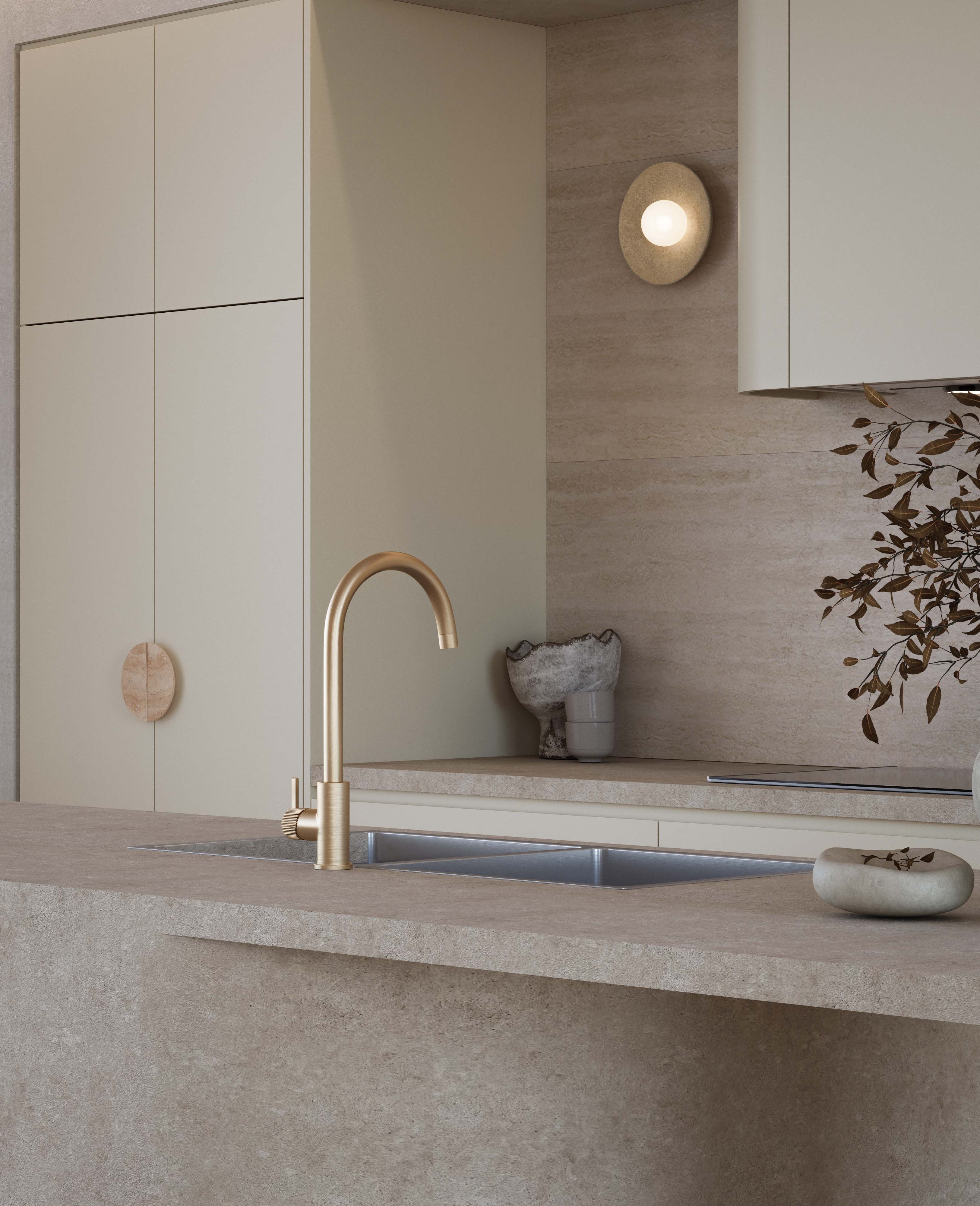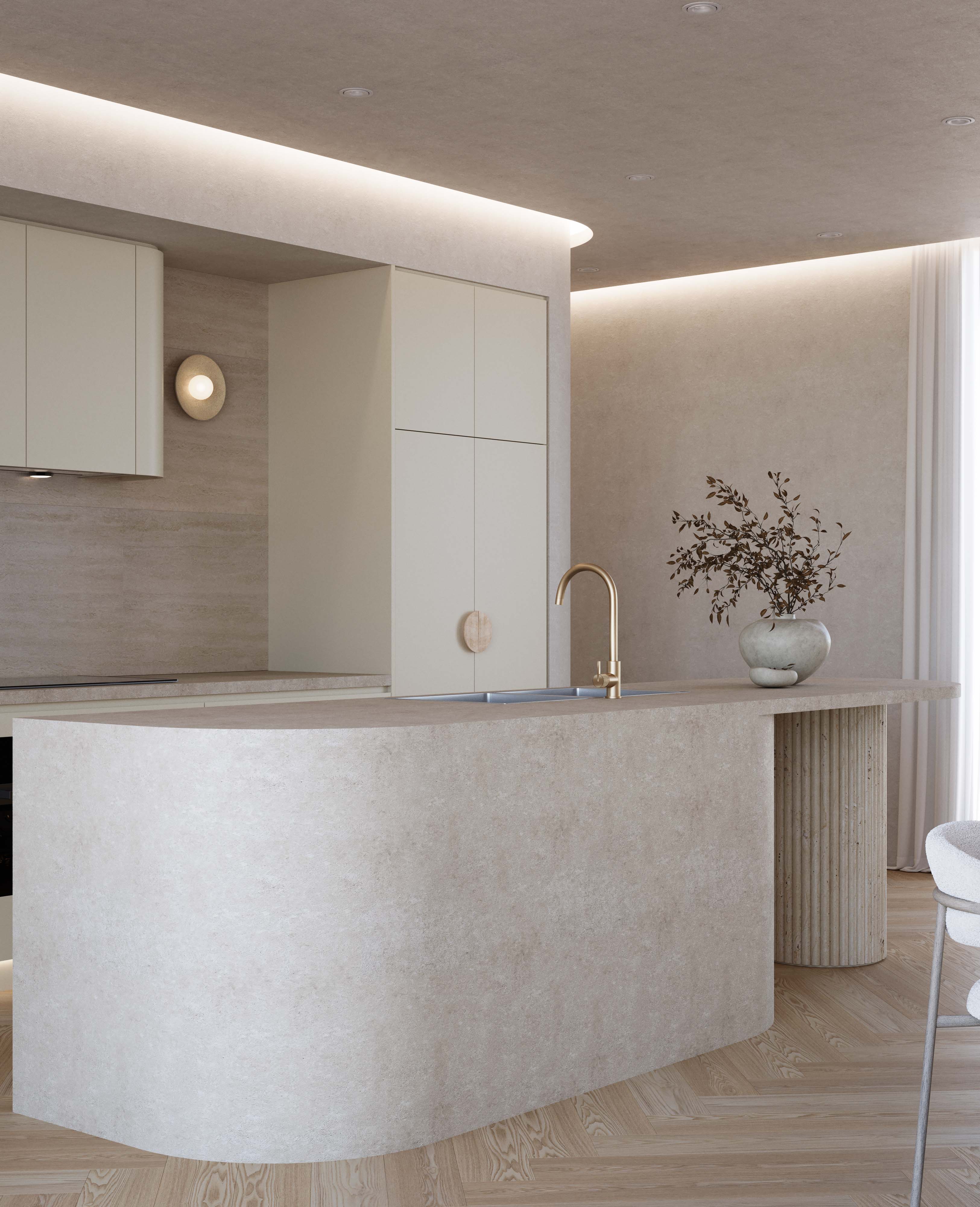 Inspired by the long, soothing exhale of being on retreat, we invite you to step into ambient neutral tones, beautifully textured microcement bench tops, brass accents and balanced curves. We adore the gentle minimalism and thoughtful details of ‘Calm Retreat’.