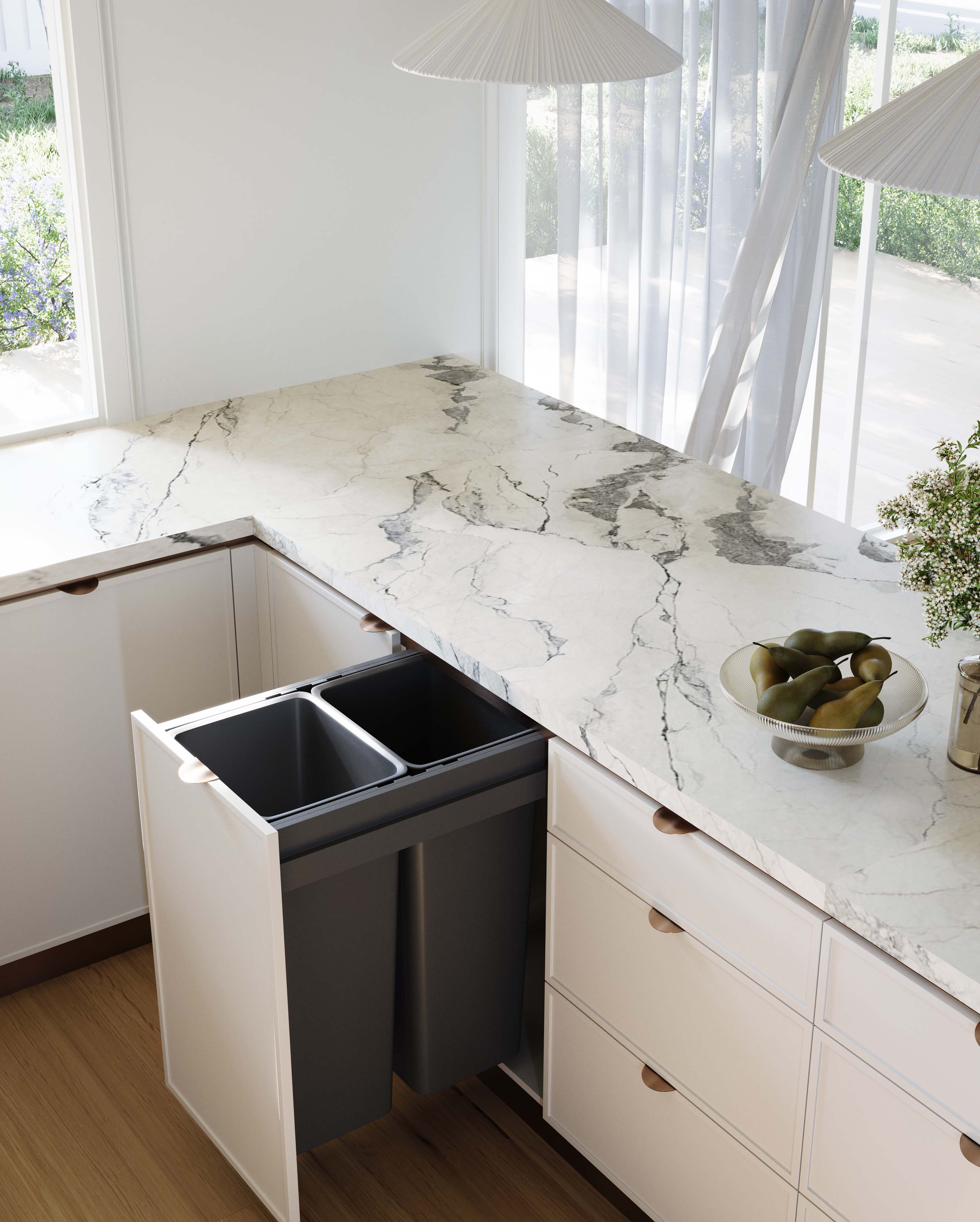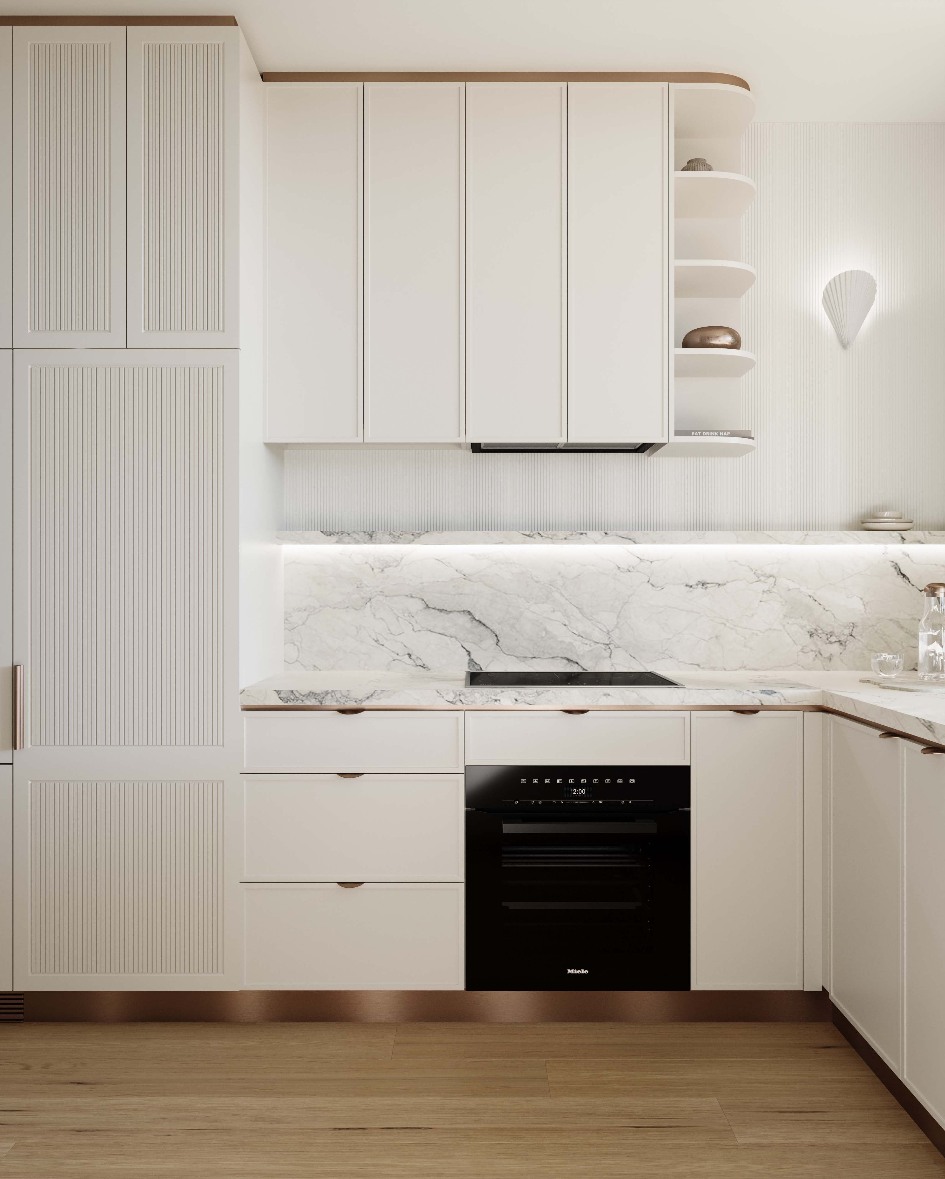 Step inside an elegant mix of timeless and comforting design cues with thoughtful, modern touches. From the soft warm grey of our cabinetry, to the stunning marble look splashback that adds a touch of luxe - Timeless Ease is elevated, soft and inviting.